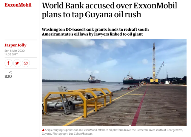 The World Bank has pledged not to fund fossil fuel extraction directly, but it is giving Guyana millions of dollars to develop governance in its burgeoning oil sector, as the south American country prepares for an oil rush led by ExxonMobil and its partners.